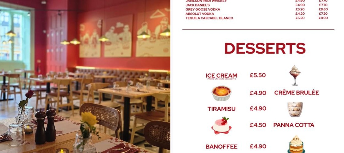 Prices at Pastaria generally range from £10 to £20, making it an affordable dining option for lunch or dinner.