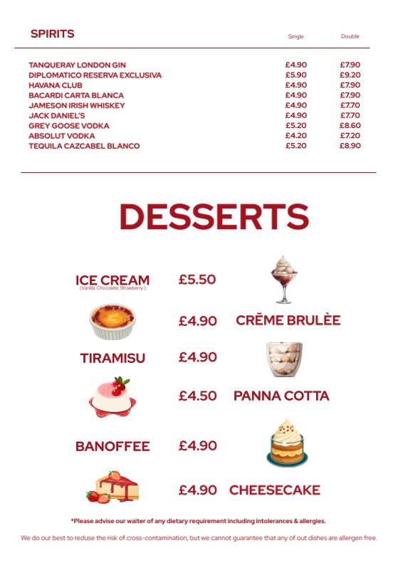 Bruschetta (6.50) (VG), Halloumi (5.70) (VG), Prawn Cocktail (8.50), Zucchini & Melanzane (5.50) (VG)